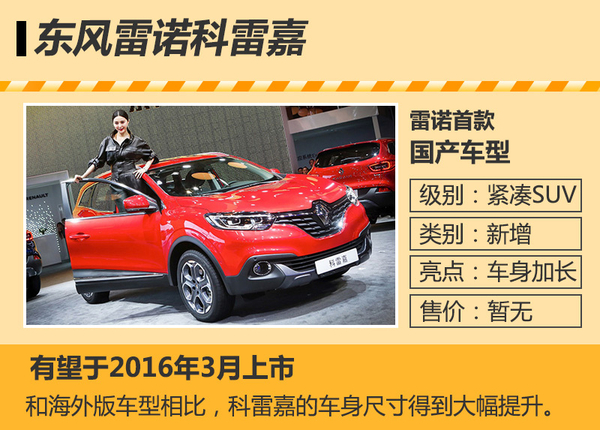 11月20日,雷诺首款国产车型“科雷嘉”在广州车展上进行了首次亮相。该车是一款紧凑级SUV,搭载了2.0升自然吸气与1.2T涡轮增压两款引擎,与之匹配6速手动或CVT变速箱。据了解,东风雷诺后续或推出其两驱与四驱版本。和海外版车型相比,科雷嘉的车身尺寸得到了大幅提升,不过目前尚无官方数据。