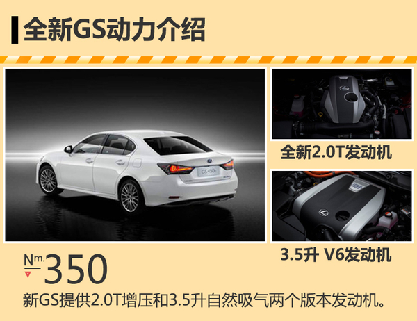 此外,新GS还针对动力系统做出了重大突破。新推出的GS 200t是LEXUS雷克萨斯首次在GS车系上应用涡轮增压动力系统。新GS200t搭载2.0升双涡管涡轮增压发动机以及传承自GS F的8速运动型变速箱(SPDS),最大功率180千瓦,最大扭矩350牛米。作为全混动豪华运动轿车的领导者,新雷克萨斯GS450h车型搭载了3.5升V6高性能发动机,协同200马力永磁同步电机共同驱动车辆,0-100公里加速时间5.9秒。在实现迅猛加速的同时,更能实现低至6.7升/100公里的综合油耗。
