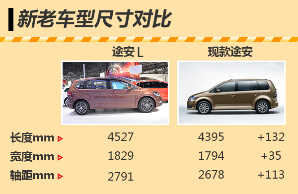 大众全新一代途安目前已在海外正式发布,其国产车型途安L也于日前在广州车展正式亮相。新车作为大众品牌旗下的一款紧凑级MPV,采用了全新MQB平台进行打造。在车身尺寸方面,途安L最大的亮点就在于车长和轴距与现款车型相比分别增加了132毫米和113毫米。