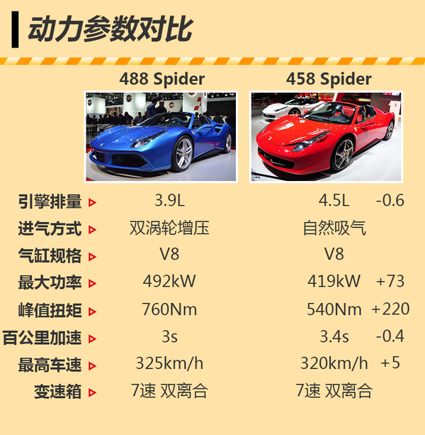 法拉利488 Spider与法拉利458 Spider动力对比