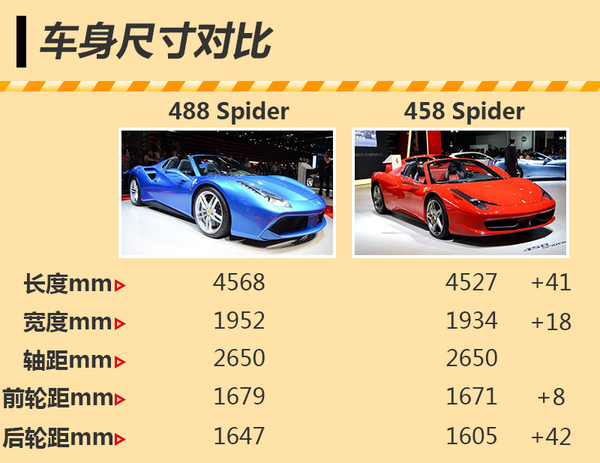 法拉利488 Spider与法拉利458 Spider车身尺寸对比