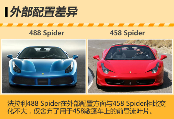 | 法拉利488 Spider与法拉利458 Spider外部配置对比 | |||