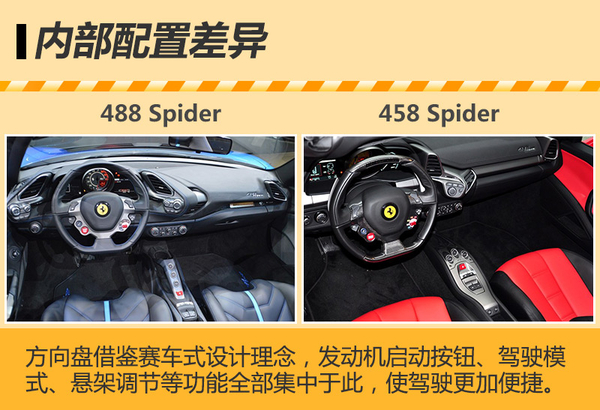 | 法拉利488 Spider与法拉利458 Spider内部配置对比 | |||