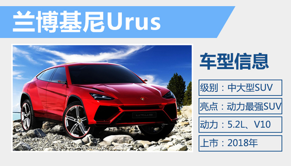 兰博基尼的SUV车型Urus的定位是一款大尺寸高性能SUV,其长宽高分别为4990/1990/1660mm。由于该平台的属性,兰博基尼SUV车型将会是前置的结构。技术方面,兰博基尼SUV有可能采用大众的LMB发动机纵置平台,采用与Gallardo相同的5.2L V10发动机,最大输出功率可能会超过550马力。同时兰博基尼SUV还有望推出混合动力版本,发动机与电动机协同输出功率达660马力。