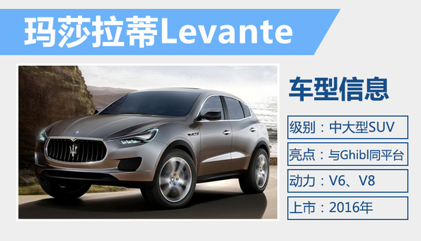 | 玛莎拉蒂 | Levante | 中大型SUV | 2016年 | |