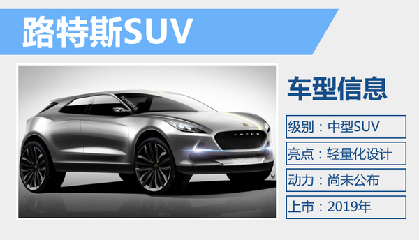 路特斯(Lotus:曾被译为“莲花”)目前正计划在华筹建工厂,据路特斯内部人士透露,2019年,路特斯将在华投产一款SUV,整车尺寸与保时捷Macan相当。对于首款SUV的车型,不久前路特斯CEO吉恩马克·盖斯(Jean-Marc Gales)在接受海外媒体采访时表示“路特斯将打造全球首款轻量化SUV,目前已开展研发工作。”据悉,这款SUV将采用铝制框架打造,整车尺寸与奥迪Q5、保时捷Macan等中型SUV相近,但整车质量却比上述车型轻200kg左右。