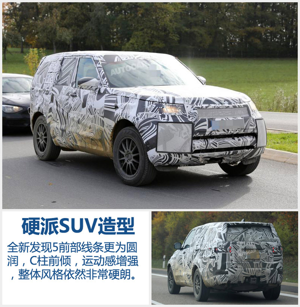 路虎品牌旗下的发现家族定位为全地形、全功能豪华SUV。2014年路虎曾在北京车展发布一款发现Vision概念车,未来全新一代发现系列将基于这款概念车进行设计。近日,网通社从英国汽车媒体Autocar获得一组路虎全新发现5的路试谍照。据了解,路虎全新发现5首次采用透明引擎盖平视显示系统。目前,以沃尔沃全新一代XC90为代表的豪华中大型SUV都配备了多项科技配置,未来全新发现5将凭借更为先进的技术,提升自身在这一领域的竞争力。