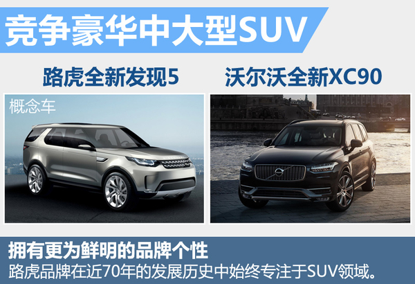 在中大型豪华SUV领域中,目前沃尔沃全新一代XC90以搭载多种先进科技配置在该细分市场中有着一定的竞争力。未来,路虎全新发现5将也将进入这一细分市场。未来全新发现5将凭借其硬朗的车身外观、舒适的驾驶体验、超强的越野性能以及强大的科技配置,在这一市场拥有较强的竞争力。