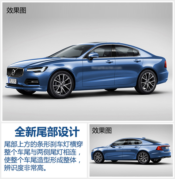 从效果图上看,新车前脸采用了与XC90、S90同样的家族式设计风格,T字型“雷神之锤”LED日间行车灯与直瀑式的进气格栅组合,进一步增加了车身前部的层次感与科技感。与S90不同的是,全新S60车身侧部腰线上扬的线条更加动感、年轻化。尾部方面,全新S60有望采用全新的设计语言,后备箱中部的条形刹车灯横穿整个车尾与两侧尾灯相连,使整个尾部造型融为一体,辨识度非常高。
