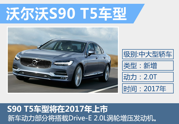 沃尔沃全新旗舰车型S90将在明年正式上市,新车与全新一代XC90同样基于沃尔沃中大型车SPA平台打造。外观方面延续了全新一代XC90所开创的“雷神之锤”家族式前脸。动力部分也将采用与全新一代XC90相同的配置。沃尔沃汽车集团研发业务高级副总裁Peter Mertens先生在与网通社沟通时表示:“在S90推出的第二年,我们还将增加搭载T5引擎的入门版车型。”与全新一代XC90一样,S90未来也将推出搭载T5动力的车型。根据目前全新一代XC90 T5车型的定价体系,未来S90 T5车型的售价相比S90 T6车型也将有一定幅度的下调。