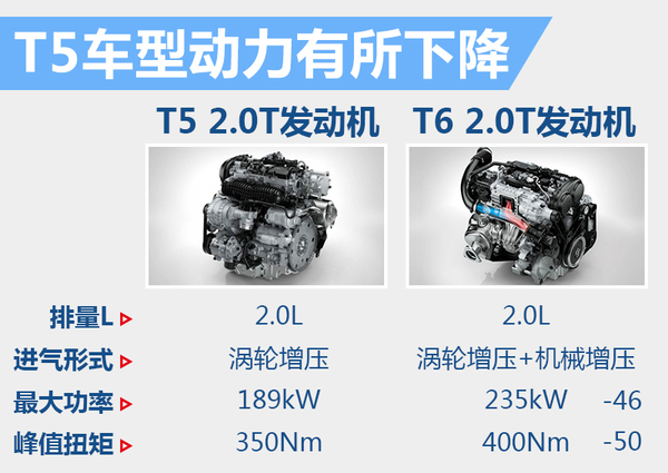 沃尔沃S90 T5车型在外观造型上将与T6车型保持一致。两款车型的区别体现在动力配置上,S90 T6车型中,发动机采用的是沃尔沃最新的Drive-E 2.0L双增压发动机(机械增压+涡轮增压),这台发动机拥有非常强劲的动力输出。而在S90 T5车型中,发动机将采用Drive-E 2.0L涡轮增压发动机,与S90 T6车型相比,虽然S90 T5的发动机少了机械增压器,但动力依然高效,足以满足日常出行需求。