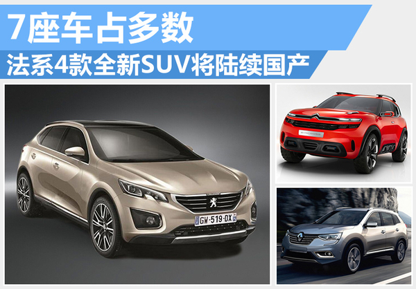 今年1-11月,国内乘用车市场中累计销量排名前十的都是SUV车型,销量达到533.3万辆,同比猛增58.9%。面对这一形势,越来越多的车企都选择将各自旗下SUV产品在华本土化生产,以增强市场竞争力。网通社梳理了法系车企相关信息后发现,法系车明年将有4款全新SUV车型陆续国产,其中3款车有望采用7座布局设计。
