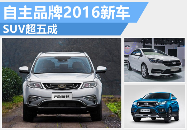 在过去的2015年,多个自主品牌推出了数十款全新车型,2016年作为一个全新规划的开端新产品的发布也将持续。网通社对自主品牌2016年将上市的新车进行了梳理汇总,发现有36个品牌在内的共计128款新车都处于在筹备上市阶段,其中时下最为流行的SUV车型占比超过了五成。