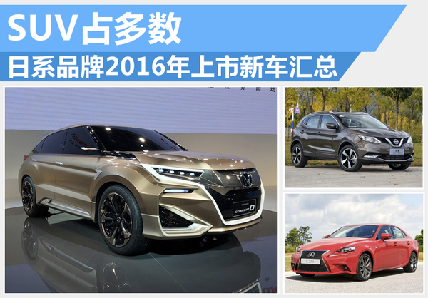2015年,国内乘用车市场增速放缓,美系、法系、德系等品牌均受到不同程度的影响,不过日系品牌却实现了逆势增长,这与各大日系车企持续向中国市场投放新产品有着重要关系。在已经到来的2016年,日系品牌将继续在产品方面发力。网通社进行梳理后发现,2016年日系品牌将推出40款新车,其中SUV车型15款,相比其他车型产品线占比更多。