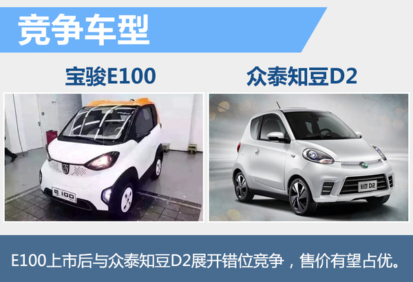 目前国内小型纯电动车市场中,五菱这款电动车并无直接竞争对手,仅有众泰知豆D2与宝骏E100形成错位竞争关系。知豆D2搭载了由波士顿电池提供的三元锂电池,续航里程由D1的160km增加到了210km(45km/h匀速行驶的工况下),相比宝骏E100的100km续航里程有着一定的优势。但宝骏E100定位要更低于知豆D2,售价有望比知豆更具优势。