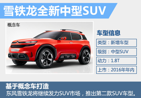 | 东风雪铁龙中型SUV | 中型SUV | 2016年内 |