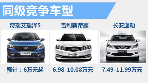 目前国内自主品牌中最热销的紧凑级轿车是吉利帝豪和长安逸动,月销量均在2万台左右,艾瑞泽5在推出后将与上述两款新车展开竞争,起售价预计在6万元左右,并将推出多种配置版本可供选择。