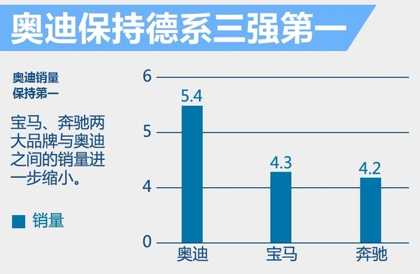 奥迪1月份的在华销量继续保持在豪华车市场第一的位置,另外排在第二、第三宝马和奔驰两大品牌也在趁势追赶,但奥迪依然大幅领先宝马、奔驰品牌多达1万台以上。
