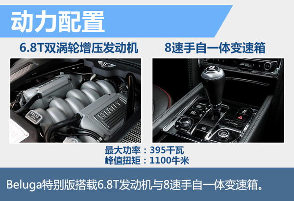 在动力方面,Beluga特别版车型依旧会搭载6.8T V8双涡轮增压发动机,这款发动机的最大功率为395千瓦,峰值扭矩达到1100牛米。在传动系统方面,新车匹配8速手自一体变速箱。在加速性方面,以慕尚极致版为例,官方数据显示其0-100公里/小时加速时间仅仅为4.9秒。