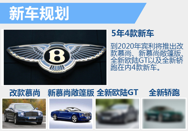 到2020年全球销量增至20,000辆,这是宾利未来销量目标。而在2016年到2020年期间,宾利将推出4款新车型,包括改款慕尚、命名“Mulsanne Grand Convertible”的新款慕尚敞篷版、基于全新MSB平台打造的新一代欧陆GT、以及基于EXP 10 Speed 6概念车打造的全新轿跑车。作为传统顶级豪华品牌,宾利不断突破、敢于创新以及打造具有品牌特色的产品,是这一豪华品牌成功的关键因素之一。
