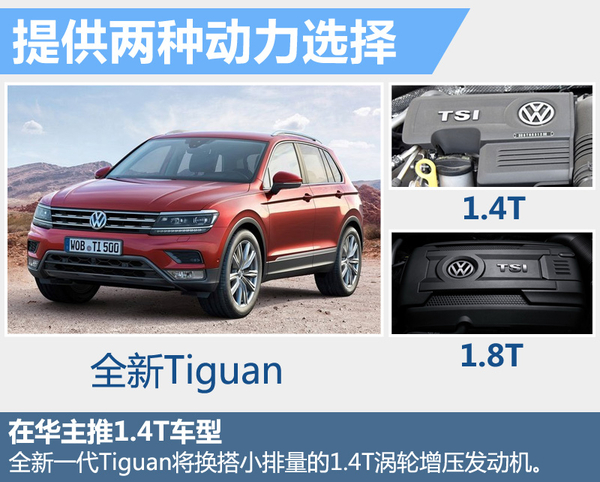 此前大众汽车发布了新一代途观,相比老款车型而言,新车重量降低了100斤,轴距也增加至2,681毫米,增长达到了77毫米。据官方数据显示,新一代Tiguan后排膝部空间增加29mm,同时行李厢容积也提升145升,达到615升,后排座椅放倒后可以提升至1665升。动力方面,新一代Tiguan提供多达八种动力选择,其中汽油发动机包括四种TSI发动机。根据上汽大众的规划,新车将于今年年内实现投产。