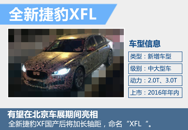 | 捷豹 | XFL | 新增 | 2016年 |