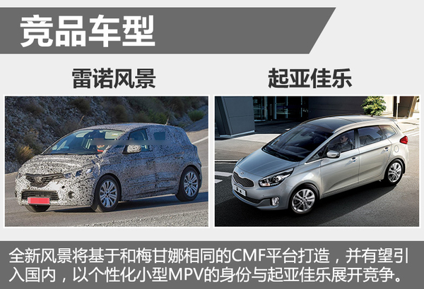 雷诺全新风景将基于与梅甘娜相同的CMF平台完成打造,因此两车有着相仿的发动机配置选择。就梅甘娜的配置信息而言,雷诺全新风景有望采用汽油机或柴油机,输出功率从67千瓦到152千瓦不等。而在上市后,全新风景也有望引入国内,从而以个性化小型MPV的身份与起亚佳乐等车型展开竞争。
