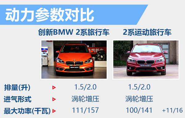 目前宝马在华已投产3系Li、5系Li以及X1等车型,全新国产车型创新BMW2系旅行车将基于UKL前驱平台打造,并在沈阳铁西工厂进行投产。国产车型的外观和内饰设计均与进口车保持一致,但在车身颜色上增加了包括巴伦西亚橙在内的多款颜色,新车上市后将成为紧凑型豪华MPV中唯一的国产车型。动力方面,国产车型将搭载的1.5T三缸和2.0T四缸两款涡轮增压发动机。这其中1.5T发动机最大功率111千瓦;2.0T发动机最大功率则为157千瓦,相比现款在售进口车型有着一定程度的提升。
