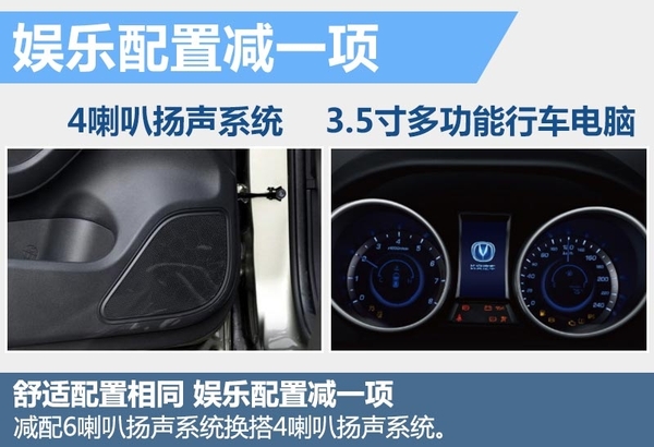 3、舒适娱乐配置对比:舒适配置相同娱乐配置减配6喇叭车载扬声系统