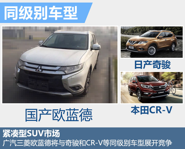根据中国汽车工业协会公布的消息,2015年SUV产销增速分别为49.7%和52.4%,增速远超乘用车总体水平。在竞争十分激烈的紧凑型SUV细分市场中,日产奇骏2015年全年累计销量166,385辆,本田CR-V销量156,608辆,销量处于前列。广汽三菱国产欧蓝德上市后,将会与奇骏和CR-V等同级别车型展开竞争,相比之下,国产欧蓝德提供7座版本,选择面更广,市场表现值得期待。