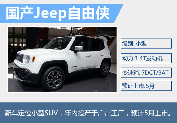 Jeep今年将有两款SUV国产上市,其中就包括自由侠。外观方面,新车采用家族式的七孔进气格栅设计,并配备标志性的圆形大灯。动力方面,国产Jeep自由侠搭载1.4T涡轮增压发动机,最大功率为118千瓦,峰值扭矩184牛米。在传动方面,有望匹配7速双离合、9速自动挡变速箱。新车将在4月25日开幕的北京车展发布,预计5月上市。国产自由侠将投产于广汽菲亚特广州工厂。