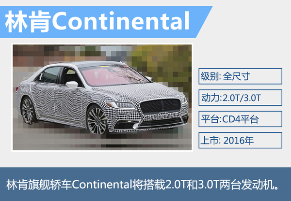 Continental是林肯着力打造的全尺寸豪华轿车。在动力方面,新车将搭载一台经过重新调校的福特3.0升EcoBoost涡轮增压发动机,最大功率高于福特2.7T EcoBoost发动机的242千瓦,扭矩有望超过500牛米。此外,在进入中国市场后,新车还有望提供一台搭载2.0T涡轮增压发动机的入门车型。网通社从国家工商行政管理总局商标局获悉:福特新注册了林肯新大陆和林肯大陆两个商标,有望成为林肯Continental概念车量产版的中文命名。