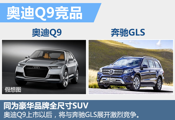 奥迪Q9上市以后,将代替Q7成为奥迪旗下的旗舰SUV车型,其也将会是奥迪在全尺寸SUV领域的第一款车型。新车未来将与奔驰GLS展开竞争,奔驰GLS目前尚未有混合动力车型出现,而奥迪Q9则有望搭载常规动力和插电混合动力,这也使得奥迪Q9将在竞争之中获得一定优势。