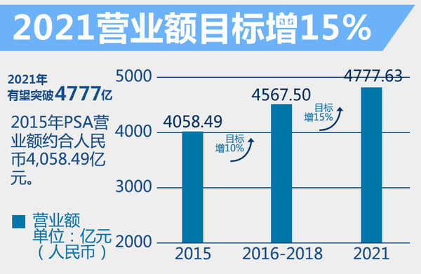 唐唯实认为,“通过‘加速超越’规划,我们有信心实现标致雪铁龙集团的有机盈利能力的增长。”建立在控制研发支出以及严格控制生产成本和固定成本的基础上,全新规划提高了标致雪铁龙集团的可持续经营业绩的标准。根据官方公布的消息,2016年至2018年,汽车部门平均经常性营业利润率达到4%,并于2021年达到6%。另外,2016年到2018年,集团营业额增长10%,到2021年增长15%(按2015年汇率计算)。根据2015年的数据计算,到2021年标致雪铁龙集团营业额有望达到人民币4777.63亿元(647.77亿欧元)。(网通社2016年4月6日北京报道)