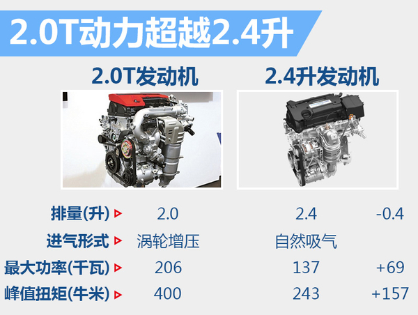 本田2.0T涡轮增压发动机已经发布,这台发动机最大功率206千瓦,峰值扭矩400牛米。相比之下,2.0T涡轮增压发动机在功率和扭矩输出方面,全面超越现款CR-V搭载的2.4升自然吸气发动机。从数据中可以看出,2.0T发动机最大功率比2.4升发动机高69千瓦,峰值扭矩超过现款2.4升发动机157牛米,产品力得到升级。