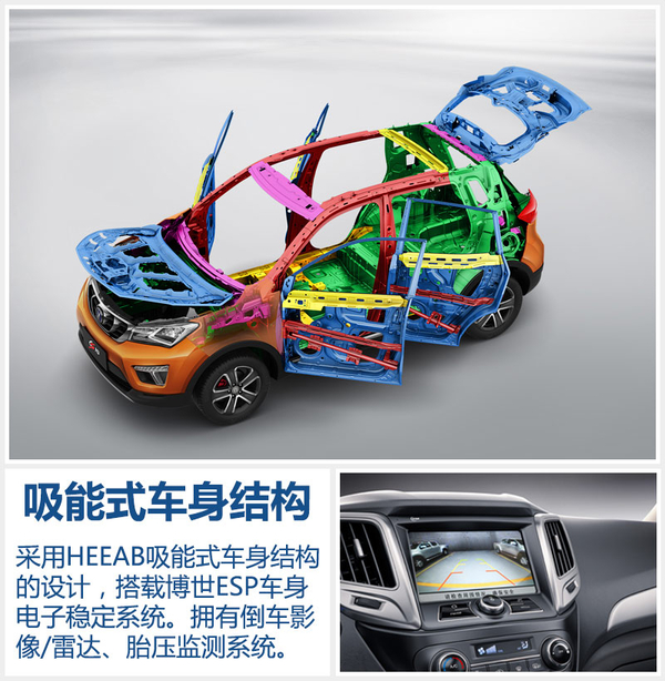 CS15采用HEEAB吸能式车身结构的设计,核心区采用1200兆帕的热成型钢板,搭载博世第九代ESP车身电子稳定系统,集成EBD、ABS、TCS、ESP、HBA、HBB、ECD8项技术。新车还拥有倒车影像、倒车雷达和胎压监测系统,为行车安全提供了保障。