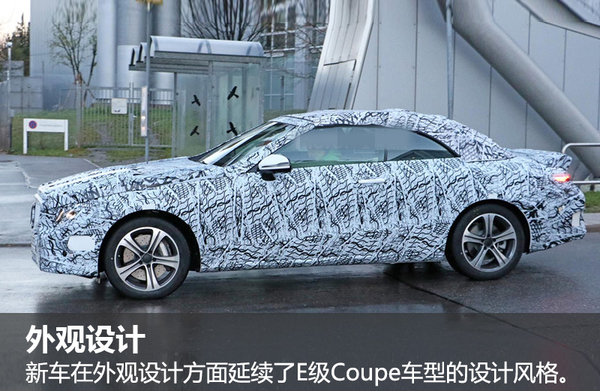 从曝光的谍照可以看出,新车在外观设计方面延续了E级Coupe车型的设计风格,而最为明显的区别则在于可电动开启及收折的硬顶敞篷机构。虽然新车将会拥有单栏进气格栅以及动感车身设计,搭配上气势十足的前大灯,动感十足。但不足之处则在于电动敞篷机构将在一定程度上增加车辆的整备质量,从而对实际动力表现造成影响。