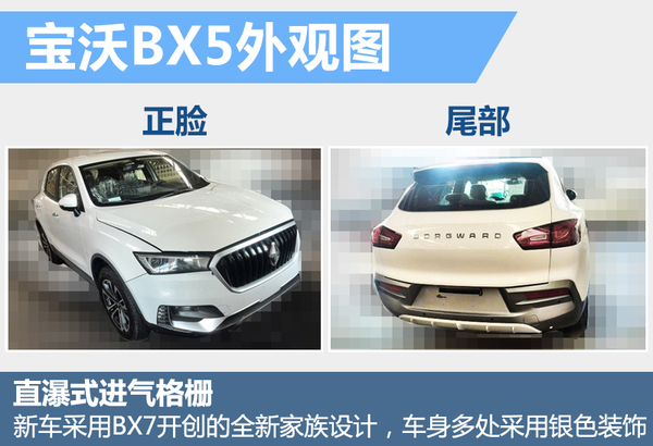 根据宝沃公布的规划,在未来几年将以每年2款以上新车的节奏推出新产品。在今年,品牌首款SUV——BX7将在4月北京车展正式上市,定位低于BX7的全新SUV—BX5也将年内推出。网通社获得宝沃BX5谍照图,新车采用BX7开创的全新家族设计,并使用多处银色装饰。新车定位紧凑SUV,上市后将与奥迪Q3等车型展开竞争。
