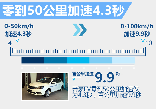 总结:从帝豪EV在北京的售价来看,这款车拥有不错的价格优势,前脸的家族式格栅配蓝色饰条也为新车提升了一定颜值,年轻运动化风格符合时下消费者审美。个人认为其253公里的续航里程已基本可以满足城市间出行,而且百公里耗电仅为同级燃油车的五分之一使用成本,十分经济划算。(网通社2016年4月11日北京报道)