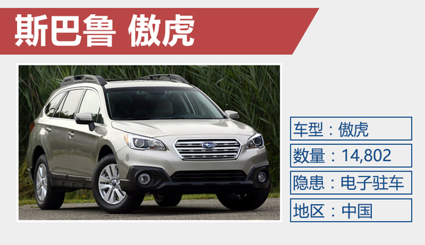 | 斯巴鲁 | 傲虎 | 14,802 | 2014年10月03日至2015年08月31日 | 电子驻车制动问题 |