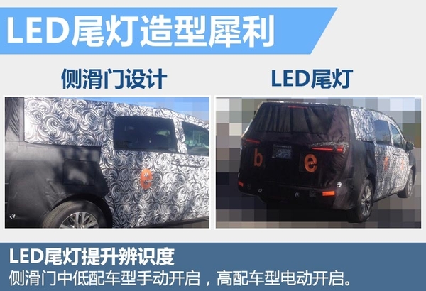 新车后排车门依旧使用了侧滑门的设计,中低配车型采用手动开启方式,高配车型采用电动开启方式。尾部方面,新款GL8车配备了犀利的LED尾灯,点亮后的视觉效果十分突出。据之前消息称新款GL8还将采用全新多连杆式独立后悬架,从而取代现款的整体扭杆梁式非独立后悬架,乘坐舒适性方面将会有进一步提升。