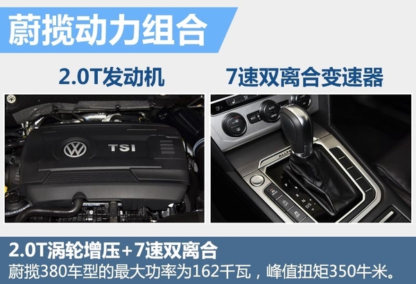动力部分,蔚揽380TSI和Alltrack版车型都将搭载大众最新的第三代EA888发动机,加上7速双离合变速箱的使用与之组成了大众的黄金动力组合,新车可以迸发出162千瓦的最大功率和300牛米的峰值扭矩。新车不仅在动力上会得到提升,在燃油经济性和稳定性方面也将获得强化,其中蔚揽四驱版Alltrack车型的百公里综合油耗仅为6.8升。