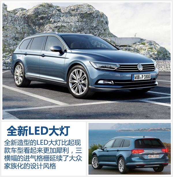 蔚揽旅行车基于MQB平台打造,在车身尺寸和外观设计均有所升级,旅行版的设计风格与海外版passat B8保持一致,前脸部分采用全新造型的LED大灯,比起现款车型看起来更加犀利,三横幅的进气格栅延续了大众家族化的设计风格,车顶处增加的行李架则彰显了它旅行车的身份。