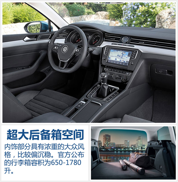 大众蔚揽的内饰部分同样具有浓重的大众风格,与海外版passat B8基本一致,黑色加银色的中控面板,并配备棕色的真皮座椅,设计风格比较偏沉稳。一个超大的后备箱空间是它的绝对优势,官方公布的数据是行李箱容积为650-1780升,为车内带来更大储物空间。