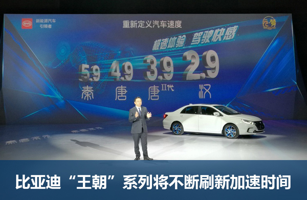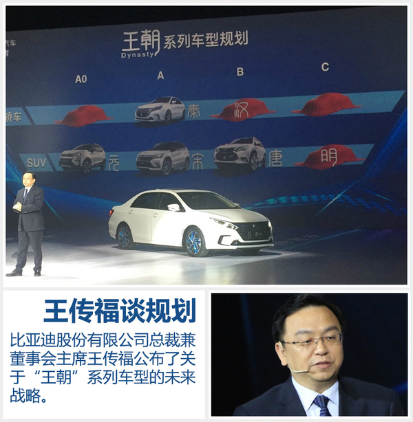 从比亚迪此次发布的未来产品规划中可以看出,“王朝”系列还将推出3款轿车(小型入门轿车、中型轿跑车“汉”、高端C级车)和中大型SUV“明”。此外,“唐”二代产品有望于2017年发布,其百公里加速时间将由现款车型的4.9秒缩短到3.9秒。待上述产品全部投放市场后,比亚迪“王朝”系列将实现对轿车和SUV从小型至中大型领域的全覆盖。