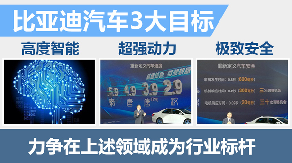 面对国内汽车市场日益激烈的竞争环境,比亚迪无时无刻不在思考该如何迈出下一步。王传福说:“比亚迪将全面推进技术、产品、品牌三大战略”,并以此为基础,力争使“比亚迪汽车具备高度智能、超强动力以及极致安全的显著特征,并且在这三个领域成为行业标杆。”