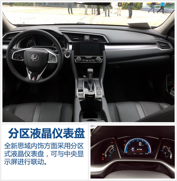 内饰方面,全新思域采用多功能真皮方向盘,使用镀铬材质装饰;此外,静电式方向盘可触摸控制音量调节。配备中央控制显示屏与仪表盘联动系统,匹配液晶显示仪表,增加科技感。新车还采用真皮换挡把手以及电子驻车按键,为用户提供便利。新车车内还配备双区独立自动空调,以及车内空气过滤器,包括粉尘和花粉过滤,为乘客提供更加健康的环境。