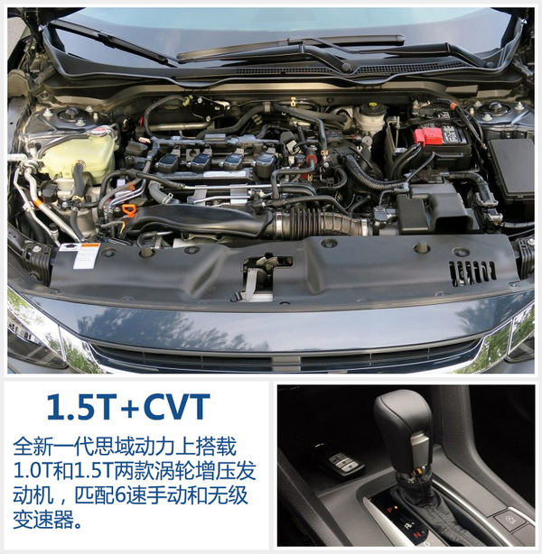 动力方面,东风本田全新思域搭载本田最新的1.0T和1.5T两款涡轮增压发动机,并取消了现款的1.8升自然吸气发动机。其中1.5T涡轮增压发动机最大功率130千瓦,峰值扭矩220牛米,实现了动力的大幅提升。全新思域在传动系统方面匹配6速手动变速器和无级变速器,0-100公里每小时的加速时间为8.6s。