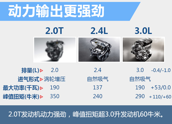 现款GL8分别搭载了2.4升和3.0升自然吸气发动机,最大功率为137千瓦和190千瓦,峰值扭矩为240牛米和290牛米。目前,上汽通用正在普及小排量增压发动机,换代的别克GL8有望搭载2.0T SIDI直喷涡轮增压发动机。这台发动机的最大功率为190千瓦,峰值扭矩达到350牛米。GL8的变型车则有望搭载一套混动系统。
