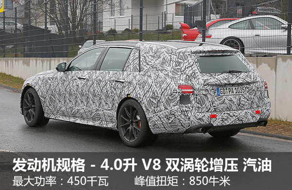 就动力总成的搭配而言,全新一代梅赛德斯-AMG E63 S旅行车将搭载有一款4.0升排量的V8发动机,为进一步挖掘发动机的潜力,梅赛德斯-AMG对这款大排量发动机进行了双涡轮增压套组的加装作业,从而爆发出450千瓦的最大输出功率,以及850牛米的峰值扭矩,最终助其在3.5秒的时间内完成百公里加速。